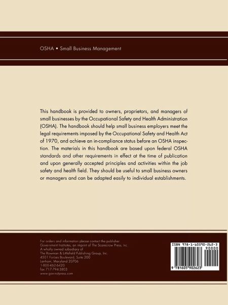 Think your business is too small to have big safety issues? Not true. According to the Occupational Safety and Health Administration, 'a serious fire, a permanent injury, or the death of an employee or owner can cause loss of profit or even an entire business.' Applying the recognized principles of prevention outlined in this book not only helps reduce accidents, but it may also improve your company's efficiency and reduce insurance claims and other costs.