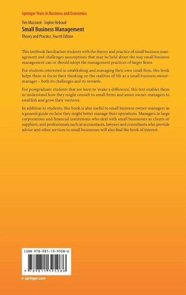 This textbook familiarises students with the theory and practice of small business management and challenges assumptions that may be held about the way small business management can or should adopt the management practices of larger firms.
