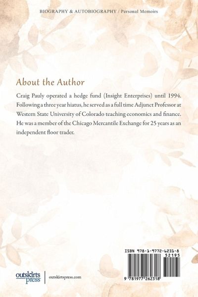A biography about the author's mother. Craig Pauly operated a hedge fund ( Insight Enterprises ) until 1994. Following a three year hiatus, he served as a full time Adjunct Professor at Western State University of Colorado teaching economics and finance. He was a member of the Chicago Mercantile Exchange for 25 years as an independent floor trader.