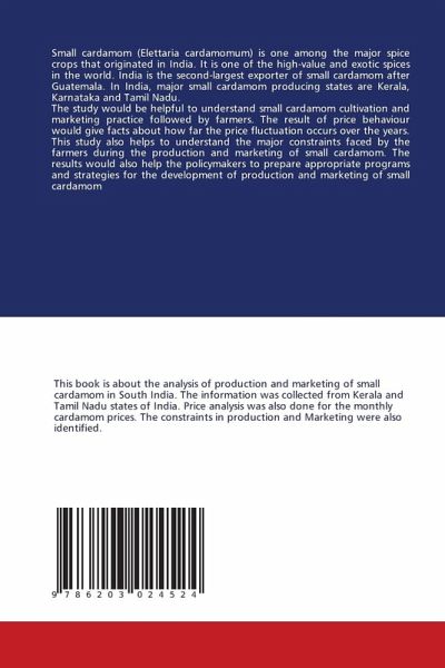 Small cardamom (Elettaria cardamomum) is one among the major spice crops that originated in India. It is one of the high-value and exotic spices in the world. India is the second-largest exporter of small cardamom after Guatemala. In India, major small cardamom producing states are Kerala, Karnataka and Tamil Nadu.The study would be helpful to understand small cardamom cultivation and marketing practice followed by farmers. The result of price behaviour would give facts about how far the price fluctuation occurs over the years. This study also helps to understand the major constraints faced by the farmers during the production and marketing of small cardamom. The results would also help the policymakers to prepare appropriate programs and strategies for the development of production and marketing of small cardamom
