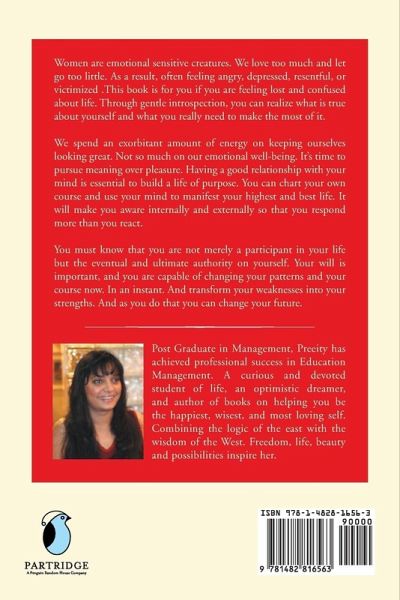 Women are emotional sensitive creatures. We love too much and let go too little. As a result, often feeling angry, depressed, resentful, or victimized .This book is for you if you are feeling lost and confused about life. Through gentle introspection, you can realize what is true about yourself and what you really need to make the most of it. We spend an exorbitant amount of energy on keeping ourselves looking great. Not so much on our emotional well-being. It's time to pursue meaning over pleasure. Having a good relationship with your mind is essential to build a life of purpose. You can chart your own course and use your mind to manifest your highest and best life. It will make you aware internally and externally so that you respond more than you react. You must know that you are not merely a participant in your life but the eventual and ultimate authority on yourself. Your will is important, and you are capable of changing your patterns and your course now. In an instant. And transform your weaknesses into your strengths. And as you do that you can change your future.