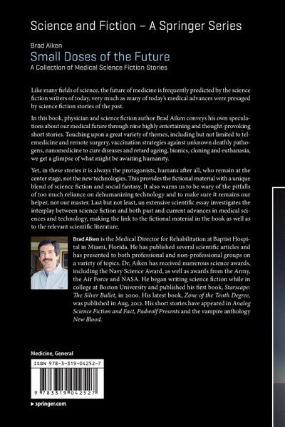 In this book, physician and science fiction author Brad Aiken conveys his own speculations about our medical future through nine highly entertaining and thought-provoking short stories. Touching upon a great variety of themes, including but not limited to telemedicine and remote surgery, vaccination strategies against unknown deathly pathogens, nanomedicine to cure diseases and retard ageing, bionics, cloning and euthanasia, we get a glimpse of what might be awaiting humanity.