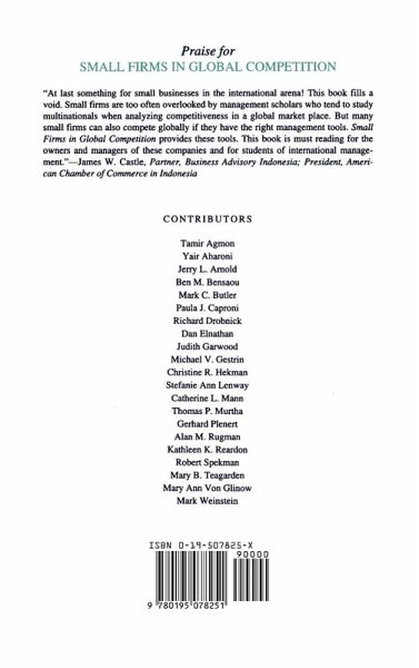 As large firms move into international markets, smaller firms find it increasingly difficult to compete internationally. This book explores the nature of the international market for smaller firms and discusses ways that they can compete and use their unique competitive advantages in the global markets. The chapters examine niche markets that do not require economies of scale and ways of rethinking the relationship between local and global markets. Tamir Agmon and Richard L. Drobnick also explore the need to design new control systems across borders that recognize local norms and the new accounting systems that have developed based on differing country environments.