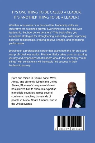 Whether in business or in personal life, leadership skills are imperative for sustained growth. Everything rises and falls with leadership. But how do we get there? This book offers you actionable strategies for strengthening leadership skills, improving business relationships, creating positive change, and enhancing performance. Drawing on a professional career that spans both the for-profit and non-profit business worlds, Plummer Bailor takes us on an exciting journey and emphasizes that leaders who do the seemingly "small things" with consistency will inevitably find success in their leadership journey.