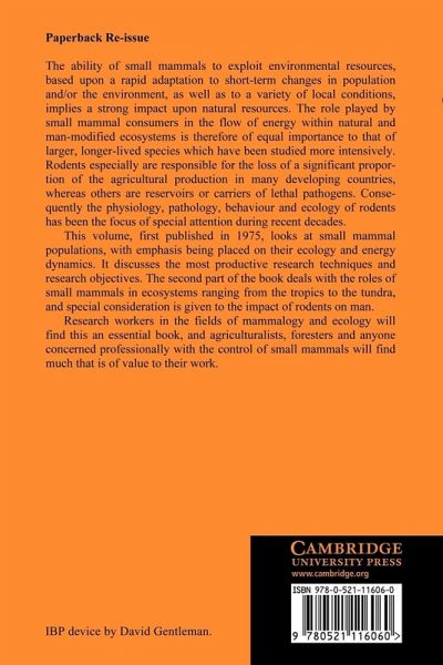 The ability of small mammals to exploit environmental resources, based upon a rapid adaptation to short-term changes in population and/or the environment, as well as to a variety of local conditions, implies a strong impact upon natural resources. The role played by small mammal consumers in the flow of energy within natural and man-modified ecosystems is therefore of equal importance to that of larger, longer-lived species which have been studied more intensively. This volume, first published in 1975, looks at small mammal populations with emphasis being placed on their ecology and energy dynamics. It discusses the most productive research techniques and research objectives. The second part of the book deals with the roles of small mammals in ecosystems ranging from the tropics to the tundra and special consideration is given to the impact of rodents on man. Research workers in the fields of mammalogy and ecology will find this an essential book and agriculturists, foresters and anyone concerned professionally with the control of small mammals will find much that is of value to their work.