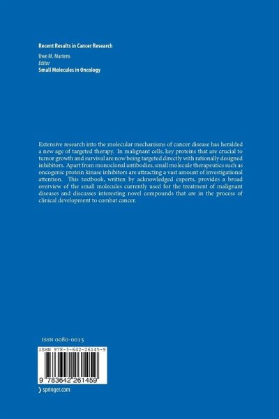 Extensive research into the molecular mechanisms of cancer disease has heralded a new age of targeted therapy. In malignant cells, key proteins that are crucial to tumor growth and survival are now being targeted directly with rationally designed inhibitors. Apart from monoclonal antibodies, small molecule therapeutics such as oncogenic protein kinase inhibitors are attracting a vast amount of investigational attention. This textbook, written by acknowledged experts, provides a broad overview of the small molecules currently used for the treatment of malignant diseases and discusses interesting novel compounds that are in the process of clinical development to combat cancer.