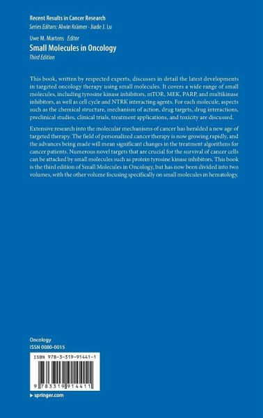 Extensive research into the molecular mechanisms of cancer has heralded a new age of targeted therapy. The field of personalized cancer therapy is now growing rapidly, and the advances being made will mean significant changes in the treatment algorithms for cancer patients. Numerous novel targets that are crucial for the survival of cancer cells can be attacked by small molecules such as protein tyrosine kinase inhibitors. This book is the third edition of Small Molecules in Oncology, but has now been divided into two volumes, with the other volume focusing specifically on small molecules in hematology.