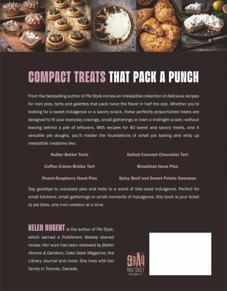 Compact Treats That Pack a Punch From the bestselling author of Pie Style comes an irresistible collection of delicious recipes for mini pies, tarts and galettes that pack twice the flavor in half the size. Whether you're looking for a sweet indulgence or a savory snack, these perfectly proportioned treats are designed to fit your everyday cravings, small gatherings or even a midnight snack-without leaving behind a pile of leftovers. With recipes for 40 sweet and savory treats, and 4 versatile pie doughs, you'll master the foundations of small pie baking and whip up irresistible creations like: - Nutter Butter Tarts - Coffee Crème Brûlée Tart - Peach Raspberry Hand Pies - Salted Caramel Chocolate Tart - Breakfast Hand Pies - Spicy Beef and Sweet Potato Samosas Say goodbye to oversized pies and hello to a world of bite-sized indulgence. Perfect for small kitchens, small gatherings or small moments of indulgence, this book is your ticket to pie bliss, one mini creation at a time.