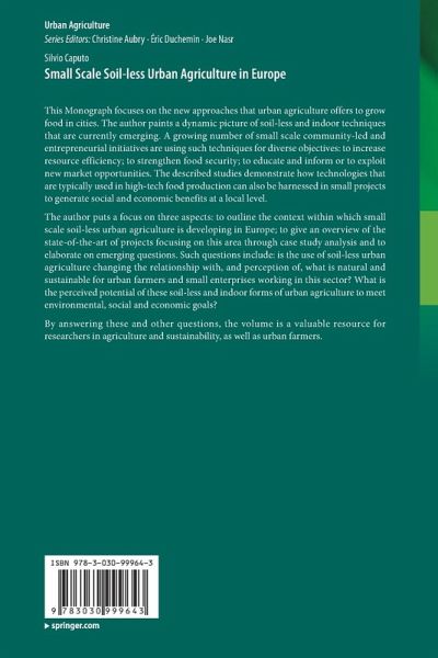 This Monograph focuses on the new approaches that urban agriculture offers to grow food in cities. The author paints a dynamic picture of soil-less and indoor techniques that are currently emerging. A growing number of small scale community-led and entrepreneurial initiatives are using such techniques for diverse objectives: to increase resource efficiency; to strengthen food security; to educate and inform or to exploit new market opportunities. The described studies demonstrate how technologies that are typically used in high-tech food production can also be harnessed in small projects to generate social and economic benefits at a local level.