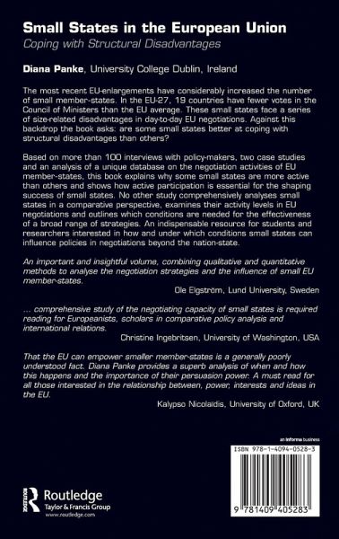 No other study comprehensively analyses small states in a comparative perspective, examines their activity levels in EU negotiations and outlines which conditions are needed for the effectiveness of a broad range of strategies. An indispensable resource for students and researchers interested in how and under which conditions small states can influence EU policies and which of the small states are most likely to be successful.