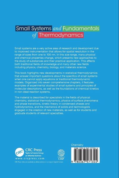 Small systems are a very active area of research and development due to improved instrumentation that allows for spatial resolution in the range of sizes from one to 100 nm. In this size range, many physical and chemical properties change, which opens up new approaches to the study of substances and their practical application. This affects both traditional fields of knowledge and many other new fields including physics, chemistry, biology, etc. This book highlights new developments in statistical thermodynamics that answer the most important questions about the specifics of small systems - when one cannot apply equations or traditional thermodynamic models.