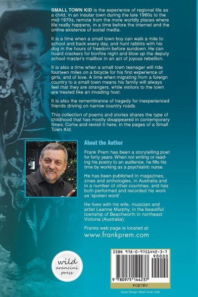 Small Town Kid is a poetry anthology that illuminates the experience of regional life as a child, in an insular town during the late 1960s to the mid-1970s, remote from the more worldly places where life really happens, in a time before the internet and the online existence of social media. It is a time when a small town boy can walk a mile to school and back every day, and hunt rabbits with his dog in the hours of freedom before sundown. He can hoard crackers for bonfire night and blow up the deputy school master's mailbox in an act of joyous rebellion. It is a time when a small town teenager will ride fourteen miles on a bicycle for his first experience of girls, and of love. A time when migrating from a foreign country to a small town means his family will always feel that they are strangers, while visitors to the town are treated like an invading host. It is also the remembrance of tragedy for inexperienced friends driving on narrow country roads. This collection of poems and stories shares the type of childhood that has mostly disappeared in contemporary times. Come and revisit it here, in the pages of a Small Town Kid.