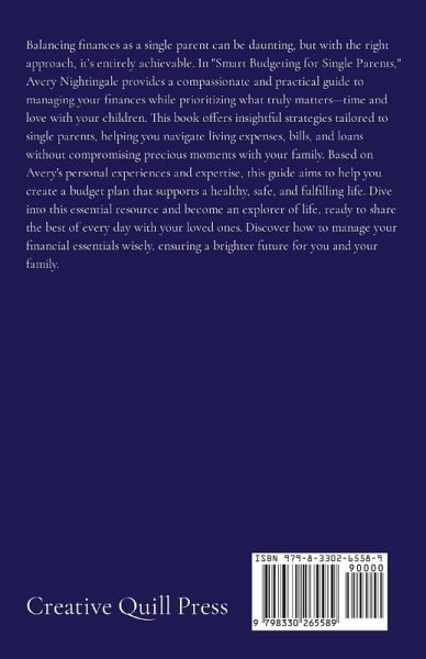 Balancing finances as a single parent can be daunting, but with the right approach, it's entirely achievable. In "Smart Budgeting for Single Parents," Avery Nightingale provides a compassionate and practical guide to managing your finances while prioritizing what truly matters-time and love with your children. This book offers insightful strategies tailored to single parents, helping you navigate living expenses, bills, and loans without compromising precious moments with your family. Based on Avery's personal experiences and expertise, this guide aims to help you create a budget plan that supports a healthy, safe, and fulfilling life. Dive into this essential resource and become an explorer of life, ready to share the best of every day with your loved ones. Discover how to manage your financial essentials wisely, ensuring a brighter future for you and your family.