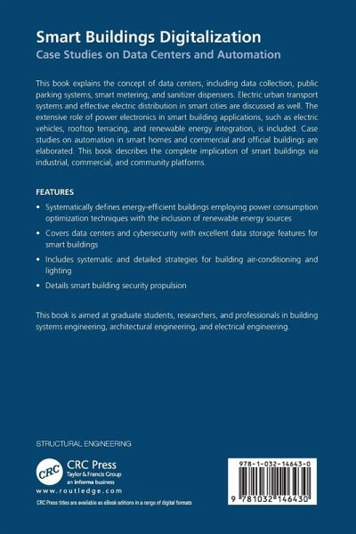 This book explains the concept of data centers, including data collection, public parking systems, smart metering, and sanitizer dispensers. Electric urban transport systems and effective electric distribution in smart cities are discussed as well. The extensive role of power electronics in smart building applications, such as electric vehicles, rooftop terracing, and renewable energy integration, is included. Case studies on automation in smart homes and commercial and official buildings are elaborated. This book describes the complete implication of smart buildings via industrial, commercial, and community platforms.
