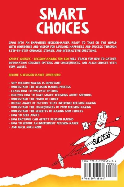 Are Your Kids Facing Tough Decisions Without Knowing How to Make Smart Choices? As parents, we know that helping our children develop essential decision-making skills can be a real challenge. Kids often struggle with making thoughtful choices, leading to frustration and indecision. And in today's fast-paced world, teaching them the art of making smart choices is more critical than ever. Suitable for children age 10+, the book contains relatable and practical examples of typical decisions kids encounter with helpful tips and strategies for making good choices including Social Decisions, Problem Solving, Peer Pressure, Ethical Choices, and Impulsive Decision-Making, Smart Choices - Decision Making for Kids teaches kids to gather information, consider consequences, and align choices with their values. Watch your child grow into an empowered decision-maker, ready to take on the world with confidence and wisdom for lifelong happiness and success through step-by-step guidance, stories, and interactive questions. Your child will discover how to become a Decision-Maker Superhero: Why Decision-Making is Important Understand the Decision-Making Process How to Evaluate Options How to Make Smart Decisions about Spending Understand the Power of Choice Become Aware of Factors that Influence Decision-Making Understand the Consequences of Poor Decision-Making Understand the Benefits of Making Good Choices How to Seek Advice How Emotions Can Affect Decision-Making How to Become an Independent Decision-Maker And Much, Much More Features: Step-by-Step Guidance Stories that Demonstrate Consequences of Decisions 30 Decision-Making Scenarios for Kids to Answer Relevant Jokes and Inspirational Quotes Glossary of Terms Give your kids the gift of powerful decision-making skills and witness them embrace a brighter, more successful future. Don't miss this opportunity to set them on a path of self-discovery and achievement. Order Now and Empower Your Children for a Lifetime of Smart Choices!