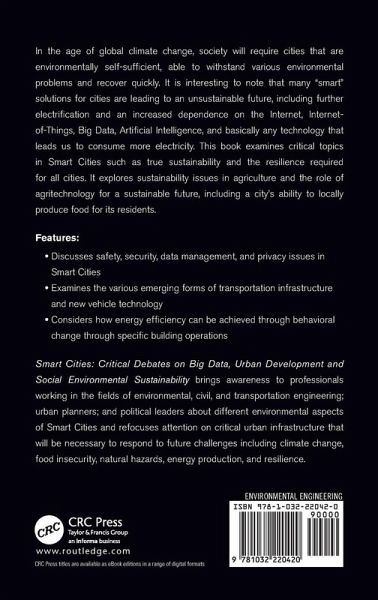 This book examines critical topics in Smart Cities such as true sustainability and the resilience required for all cities. It explores sustainability issues in agriculture and the role of agri-technology for a sustainable future, including a cityâ s ability to locally produce food for its residents.