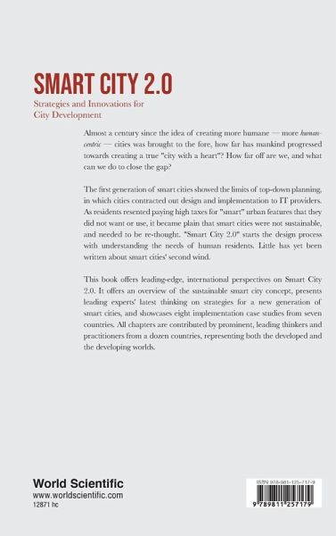 Almost a century since the idea of creating more humane - more human-centric - cities was brought to the fore, how far has mankind progressed towards creating a true "city with a heart"? How far off are we, and what can we do to close the gap? The first generation of smart cities showed the limits of top-down planning, in which cities contracted out design and implementation to IT providers. As residents resented paying high taxes for "smart" urban features that they did not want or use, it became plain that smart cities were not sustainable, and needed to be re-thought. "Smart City 2.0" starts the design process with understanding the needs of human residents. Little has yet been written about smart cities' second wind. This book offers leading-edge, international perspectives on Smart City 2.0. It offers an overview of the sustainable smart city concept, presents leading experts' latest thinking on strategies for a new generation of smart cities, and showcases eight implementation case studies from seven countries. All chapters are contributed by prominent, leading thinkers and practitioners from a dozen countries, representing both the developed and the developing worlds.