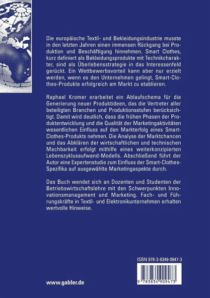 Raphael Kromer erarbeitet ein Ablaufschema für die Generierung neuer Produktideen, das die Vertreter aller beteiligten Branchen und Produktionsstufen berücksichtigt. Damit wird deutlich, dass die frühen Phasen der Produktentwicklung und die Qualität der Marketingaktivitäten wesentlichen Einfluss auf den Markterfolg eines Smart-Clothes-Produkts nehmen. Die Analyse der Marktchancen und das Abklären der wirtschaftlichen und technischen Machbarkeit erfolgt mithilfe eines weiterkonzipierten Lebenszyklusaufwand-Modells. Abschließend führt der Autor eine Expertenstudie zum Einfluss der Smart-Clothes-Spezifika auf ausgewählte Marketingaspekte durch.