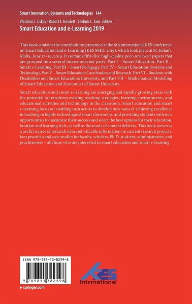 This book contains the contributions presented at the 6th international KES conference on Smart Education and e-Learning (KES SEEL-2019), which took place at St. Julian's, Malta, June 17-19, 2019. It contains fifty-five high-quality peer-reviewed papers that are grouped into several interconnected parts: Part 1 - Smart Education, Part 2 - Smart e-Learning, Part 3 - Smart Pedagogy, Part 4 - Smart Education: Systems and Technology, Part 5 - Smart Education: Case Studies and Research, Part 6 - Students with Disabilities and Smart Education/University, and Part 7 - Mathematical Modelling of Smart…mehr