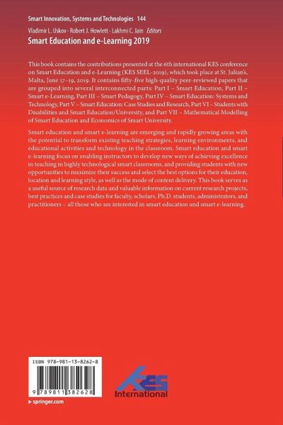 This book contains the contributions presented at the 6th international KES conference on Smart Education and e-Learning (KES SEEL-2019), which took place at St. Julian's, Malta, June 17-19, 2019. It contains fifty-five high-quality peer-reviewed papers that are grouped into several interconnected parts: Part 1 - Smart Education, Part 2 - Smart e-Learning, Part 3 - Smart Pedagogy, Part 4 - Smart Education: Systems and Technology, Part 5 - Smart Education: Case Studies and Research, Part 6 - Students with Disabilities and Smart Education/University, and Part 7 - Mathematical Modelling of Smart Education and Economics of Smart University.