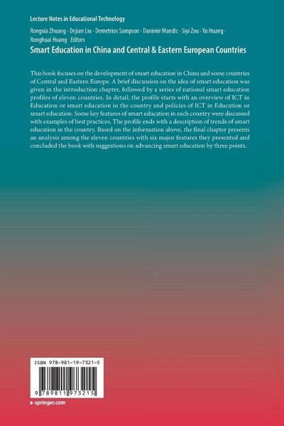 This book focuses on the development of smart education in China and some countries of Central and Eastern Europe. A brief discussion on the idea of smart education was given in the introduction chapter, followed by a series of national smart education profiles of eleven countries. In detail, the profile starts with an overview of ICT in Education or smart education in the country and policies of ICT in Education or smart education. Some key features of smart education in each country were discussed with examples of best practices. The profile ends with a description of trends of smart education in the country. Based on the information above, the final chapter presents an analysis among the eleven countries with six major features they presented and concluded the book with suggestions on advancing smart education by three points.