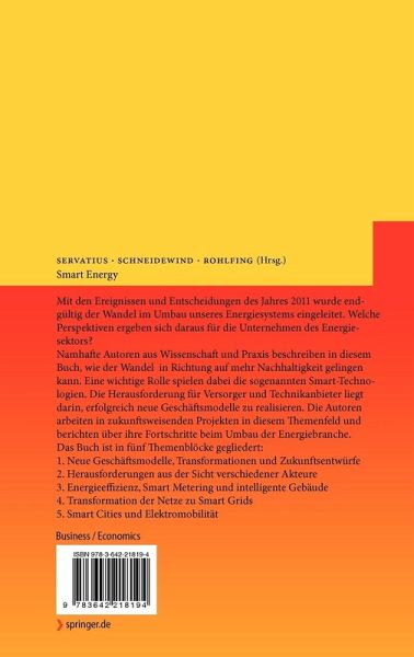 Mit den Ereignissen und Entscheidungen des Jahres 2011 wurde endgültig derWandel im Umbau unseres Energiesystems eingeleitet. Welche Perspektiven ergeben sich daraus für die Unternehmen des Energiesektors? Namhafte Autoren aus Wissenschaft und Praxis beschreiben in diesem Buch, wie der Wandel in Richtung auf mehr Nachhaltigkeit gelingen kann. Eine wichtige Rolle spielen dabei die sogenannten Smart-Technologien. Die Herausforderung für Versorger und Technikanbieter liegt darin, erfolgreich neue Geschäftsmodelle zu realisieren. Die Autoren arbeiten in zukunftsweisenden Projekten in diesem Themenfeld und berichten über ihre Fortschritte beim Umbau der Energiebranche. Das Buch ist in fünf Themenblöcke gegliedert: