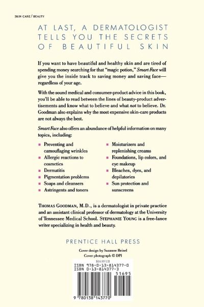 From Simon & Schuster and Thomas Goodman and Stephanie Young's, Smart Face is a dermatologist's guide to saving your money and saving your skin. As reviewed by Publishers Weekly, "Goodman (The Skin Doctor's Skin Doctoring Book) and freelance writer Young offer a comprehensive consumer reference guide to cosmetics and facial skin care with medical sections that are refreshingly clear and jargon-free."
