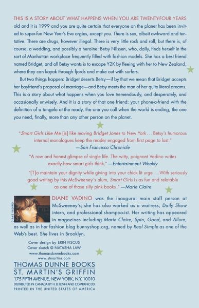 This is a story about what happens when you are twenty-four years old and it is 1999 and you are quite certain that everyone on the planet has been invited to super-fun New Year's Eve orgies, except you. There is sex, albeit awkward and tentative. There are drugs, however illegal. There is very little rock and roll, but there is, of course, a wedding, and possibly a heroine: Betsy Nilssen, who, daily, finds herself in the sort of Manhattan workplace frequently filled with fashion models. She has a best friend named Bridget, and all Betsy wants is to escape Y2K by fleeing with her to New Zealand, where they could kayak through fjords and make out with surfers. But two things happen: Bridget deserts Betsy-if by that we mean that Bridget accepts her boyfriend's proposal of marriage-and Betsy meets the man of her quite literal dreams. This is a story about what happens when you love tremendously, and desperately, and occasionally unwisely. And it is a story of that one friend: your phone-a-friend with the definition of a tangelo at the ready, the one you call when the world is ending, the one you need, finally, more than any other person on the planet.