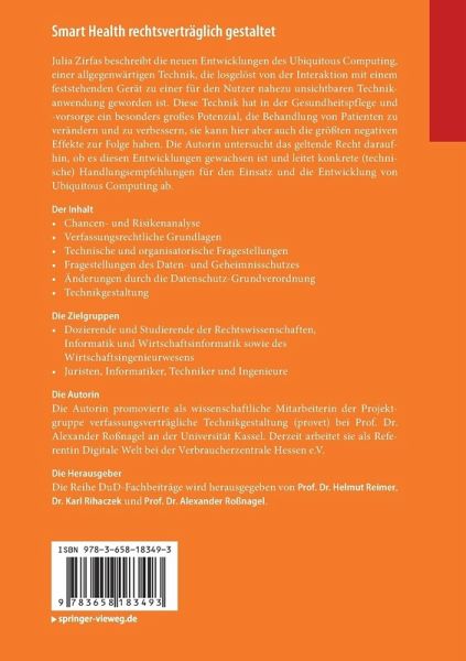 Julia Zirfas beschreibt die neuen Entwicklungen des Ubiquitous Computing, einer allgegenwärtigen Technik, die losgelöst von der Interaktion mit einem feststehenden Gerät zu einer für den Nutzer nahezu unsichtbaren Technikanwendung geworden ist. Diese Technik hat in der Gesundheitspflege und -vorsorge ein besonders großes Potenzial, die Behandlung von Patienten zu verändern und zu verbessern, sie kann hier aber auch die größten negativen Effekte zur Folge haben. Die Autorin untersucht das geltende Recht daraufhin, ob es diesen Entwicklungen gewachsen ist und leitet konkrete (technische) Handlungsempfehlungen für den Einsatz und die Entwicklung von Ubiquitous Computing ab.