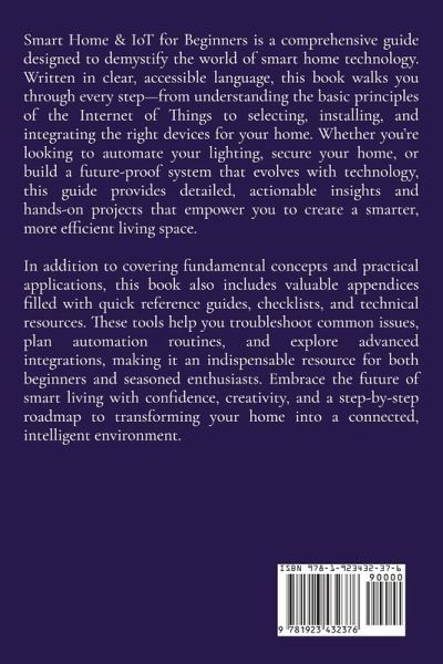 Smart Home & IoT for Beginners is a comprehensive guide designed to demystify the world of smart home technology. Written in clear, accessible language, this book walks you through every step-from understanding the basic principles of the Internet of Things to selecting, installing, and integrating the right devices for your home. Whether you're looking to automate your lighting, secure your home, or build a future-proof system that evolves with technology, this guide provides detailed, actionable insights and hands-on projects that empower you to create a smarter, more efficient living space. In addition to covering fundamental concepts and practical applications, this book also includes valuable appendices filled with quick reference guides, checklists, and technical resources. These tools help you troubleshoot common issues, plan automation routines, and explore advanced integrations, making it an indispensable resource for both beginners and seasoned enthusiasts. Embrace the future of smart living with confidence, creativity, and a step-by-step roadmap to transforming your home into a connected, intelligent environment.