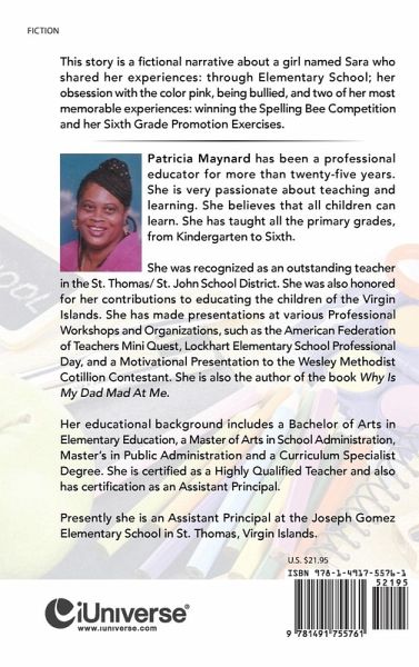 This story is a fictional narrative about a girl named Sara who shared her experiences: through Elementary School; her obsession with the color pink, being bullied, and two of her most memorable experiences: winning the Spelling Bee Competition and her Sixth Grade Promotion Exercises.