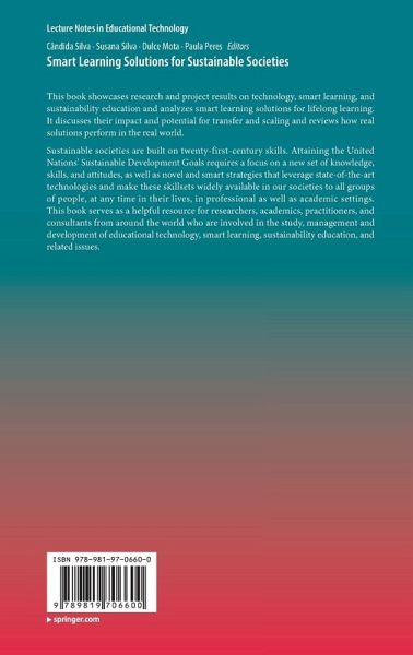 This book showcases research and project results on technology, smart learning, and sustainability education and analyzes smart learning solutions for lifelong learning. It discusses their impact and potential for transfer and scaling and reviews how real solutions perform in the real world.
