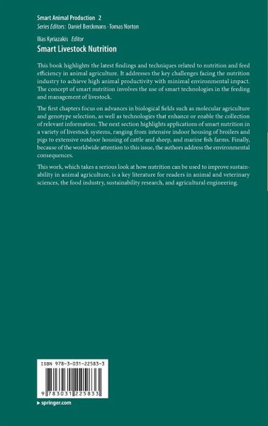 The first chapters focus on advances in biological fields such as molecular agriculture and genotype selection, as well as technologies that enhance or enable the collection of relevant information. The next section highlights applications of smart nutrition in a variety of livestock systems, ranging from intensive indoor housing of broilers and pigs to extensive outdoor housing of cattle and sheep, and marine fish farms. Finally, because of the worldwide attention to this issue, the authors address the environmental consequences.