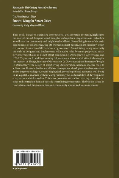 This book, based on extensive international collaborative research, highlights the state-of-the-art design of smart living for metropolises, megacities, and metacities, as well as at the community and neighbourhood level. Smart living is one of six main components of smart cities, the others being smart people, smart economy, smart environment, smart mobility and smart governance. Smart living in any smart city can only be designed and implemented with active roles for smart people and smart city government, and as a joint effort combining e-Democracy, e-Governance and ICT-IoT systems. In addition to using information and communication technologies, the Internet of Things, Internet of Governance (e-Governance) and Internet of People (e-Democracy), the design of smart living utilizes various domain-specific tools to achieve coordinated, effective and efficient management, development, and conservation, and to improve ecological, social, biophysical, psychological and economic well-being in an equitable manner without compromising the sustainability of development ecosystems and stakeholders. This book presents case studies covering more than 10 cities and centred on domain-specific smart living components. The book is issued in two volumes and this volume focus on community studies and ways and means.