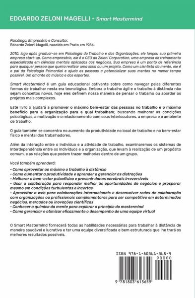 Smart Mastermind é um guia educacional cativante sobre como navegar pelas diferentes formas de trabalhar nesta era tecnológica. Embora o trabalho ágil e o trabalho à distância não sejam conceitos novos, hoje eles definem nossa maneira de pensar o trabalho ou abordar os projetos mais complexos. Este livro o ajudará a promover o máximo bem-estar das pessoas no trabalho e o máximo benefício para a organização para a qual trabalham; buscando melhorar as condições psicológicas, a motivação e o relacionamento com seus interlocutores, a empresa e o ambiente de trabalho. O guia também se concentra no aumento da produtividade no local de trabalho e no bem-estar físico e mental dos trabalhadores. Além da interação entre o indivíduo e a atividade de trabalho, examinaremos os sistemas de interdependência entre os indivíduos e a organização, que levam à realização de um propósito comum, e as relações que podem trazer melhorias dentro de um grupo. Você também aprenderá: Como aproveitar ao máximo o trabalho à distância Como aumentar a produtividade e aprender a gerenciar as distrações Melhorar o bem-estar psicofísico e prevenir danos cerebrais irreversíveis Usar a colaboração para responder melhor às oportunidades de negócios e prosperar mesmo em condições turbulentas e incertas Aproveitar a web para colaborações internacionais e desenvolver redes de colaboração com organizações ou profissionais complementares para ser competitivo em determinados negócios, mercados ou inovações científicas. Conhecer a química da mente para explorar o princípio do mastermind Como gerenciar e otimizar eficazmente o desempenho de uma equipe virtual O Smart Mastermind fornecerá todas as habilidades necessárias para trabalhar à distância de maneira saudável e lucrativa e ter uma equipe diversificada e bem estruturada que lhe trará os melhores resultados possíveis.