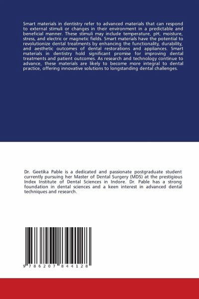 Smart materials in dentistry refer to advanced materials that can respond to external stimuli or changes in their environment in a predictable and beneficial manner. These stimuli may include temperature, pH, moisture, stress, and electric or magnetic fields. Smart materials have the potential to revolutionize dental treatments by enhancing the functionality, durability, and aesthetic outcomes of dental restorations and appliances. Smart materials in dentistry hold significant promise for improving dental treatments and patient outcomes. As research and technology continue to advance, these materials are likely to become more integral to dental practice, offering innovative solutions to longstanding dental challenges.