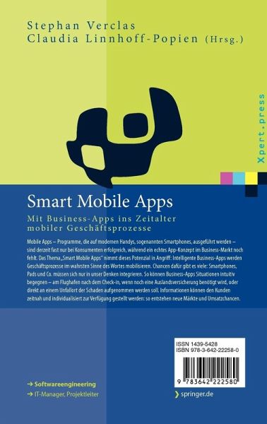 Mobile Apps - Programme, die auf Smartphones ausgeführt werden - sind derzeit fast nur bei Konsumenten erfolgreich, während ein echtes App-Konzept im Business-Markt noch fehlt. Das Thema "Smart Mobile Apps" nimmt dieses Potenzial in Angriff: Intelligente Business-Apps werden Geschäftsprozesse im wahrsten Sinne des Wortes mobilisieren. Es entsteht ein mobiles Internet, das Geschäftsprozesse in allen Branchen befördern kann. Chancen dafür gibt es viele: Smartphones, Pads und Co. müssen sich nur in unser Denken integrieren. Durch sie kann Situationen intuitiv begegnet werden - am Flughafen nach dem Check-in, wenn noch eine Auslandsversicherung benötigt wird, oder direkt an einem Unfallort der Schaden aufgenommen werden soll. Informationen können den Kunden zeitnah und individualisiert zur Verfügung gestellt werden: so entstehen neue Märkte und Umsatzchancen.