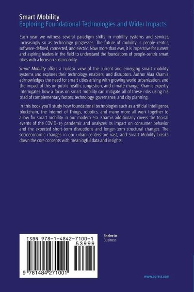 In this book you'll study how foundational technologies such as artificial intelligence, blockchain, the Internet of Things, robotics, and many more all work together to allow for smart mobility in our modern era. Khamis additionally covers the topical events of the COVID-19 pandemic and analyzes its impact on consumer behavior and the expected short-term disruptions and longer-term structural changes. The socioeconomic changes in our urban centers are vast, and Smart Mobility breaks down the core concepts with meaningful data and insights.