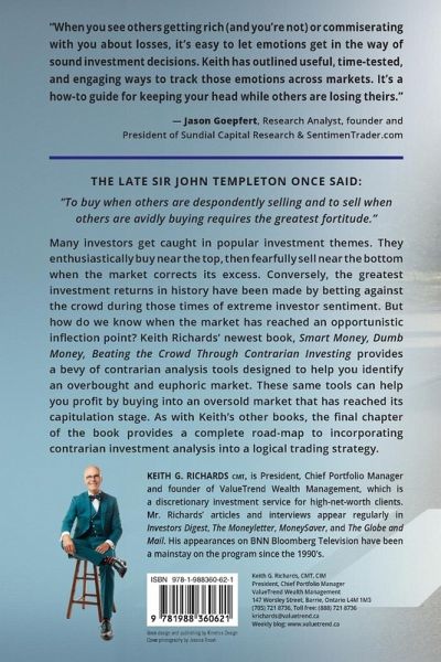 The late Sir John Templeton once said: "To buy when others are despondently selling and to sell when others are avidly buying requires the greatest fortitude." Many investors get caught in popular investment themes. They enthusiastically buy near the top, then fearfully sell near the bottom when the market corrects its excess. Conversely, the greatest investment returns in history have been made by betting against the crowd during those times of extreme investor sentiment. But how do we know when the market has reached an opportunistic inflection point? Keith Richards' newest book, Smart Money, Dumb Money, Beating the Crowd Through Contrarian Investing provides a bevy of contrarian analysis tools designed to help you identify an overbought and euphoric market. These same tools can help you profit by buying into an oversold market that has reached its capitulation stage. As with Keith's other books, the final chapter of the book provides a complete road-map to incorporating contrarian investment analysis into a logical trading strategy.