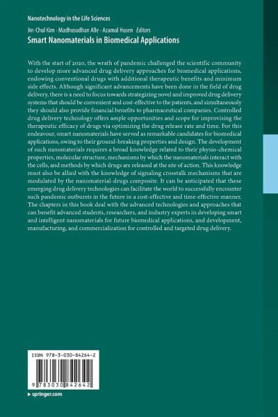 With the start of 2020, the wrath of pandemic challenged the scientific community to develop more advanced drug delivery approaches for biomedical applications, endowing conventional drugs with additional therapeutic benefits and minimum side effects. Although significant advancements have been done in the field of drug delivery, there is a need to focus towards strategizing novel and improved drug delivery systems that should be convenient and cost-effective to the patients, and simultaneously they should also provide financial benefits to pharmaceutical companies. Controlled drug delivery technology offers ample opportunities and scope for improvising the therapeutic efficacy of drugs via optimizing thedrug release rate and time. For this endeavour, smart nanomaterials have served as remarkable candidates for biomedical applications, owing to their ground-breaking properties and design. The development of such nanomaterials requires a broad knowledge related to their physio-chemical properties, molecular structure, mechanisms by which the nanomaterials interact with the cells, and methods by which drugs are released at the site of action. This knowledge must also be allied with the knowledge of signaling crosstalk mechanisms that are modulated by the nanomaterial-drugs composite. It can be anticipated that these emerging drug delivery technologies can facilitate the world to successfully encounter such pandemic outbursts in the future in a cost-effective and time-effective manner. The chapters in this book deal with the advanced technologies and approaches that can benefit advanced students, researchers, and industry experts in developing smart and intelligent nanomaterials for future biomedical applications, and development, manufacturing, and commercialization for controlled and targeted drug delivery.