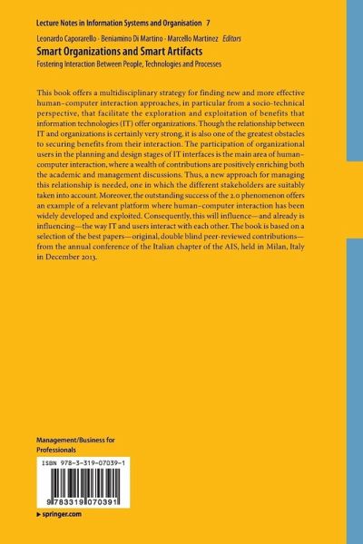 This book offers a multidisciplinary strategy for finding new and more effective human-computer interaction approaches, in particular from a socio-technical perspective, that facilitate the exploration and exploitation of benefits that information technologies (IT) offer organizations. Though the relationship between IT and organizations is certainly very strong, it is also one of the greatest obstacles to securing benefits from their interaction. The participation of organizational users in the planning and design stages of IT interfaces is the main area of human-computer interaction, where a wealth of contributions are positively enriching both the academic and management discussions. Thus, a new approach for managing this relationship is needed, one in which the different stakeholders are suitably taken into account. Moreover, the outstanding success of the 2.0 phenomenon offers an example of a relevant platform where human-computer interaction has been widely developed and exploited. Consequently, this will influence and already is influencing - the way IT and users interact with each other. The book is based on a selection of the best papers - original, double blind peer-reviewed contributions - from the annual conference of the Italian chapter of the AIS, held in Milan, Italy in December 2013.