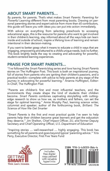 This book is a resource to guide parents in creating, choosing and advocating for powerful, student-centered learning experiences for their children. It is designed to facilitate conversation about important educational decisions parents face today. With advice on everything from picking preschools to accessing educational apps, this is the resource for parents so they can be informed, involved, inspirational and intentional. As educators and as parents, we have seen profound shifts in the way in which human beings learn-both young and old. Families face unprecedented amounts of information and education-related decisions. This often leaves parents navigating a complex maze of new learning opportunities, new standards, new assessments and new technology. We spend a lot of our time creating and sharing resources for educators and parents (who are often one and the same audience). Time and time again, we observe that families are left out of the equation when it comes to determining the primary audience for education reports, papers and articles-even though they are among the hungriest for informed opinions that can help them. This is why, in partnership with The Nellie Mae Education Foundation, Getting Smart has cultivated a popular parents' blog series, Smart Parents, to share stories for parents by parents on both GettingSmart.com and on The Huffington Post. The project, hatched around the office kitchen counter in the summer of 2014, grew out of the recognition that parents need help making informed decisions, finding quality resources and providing the best supports for kids. With the 80+ parent stories we've gathered, we have authored our newest book: Smart Parents: Parenting for Powerful Learning, publishing in August 2015.