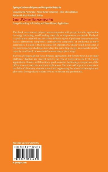 This book covers smart polymer nanocomposites with perspectives for application in energy harvesting, as self-healing materials, or shape memory materials. The book is application-oriented and describes different types of polymer nanocomposites, such as elastomeric composites, thermoplastic composites, or conductive polymer composites. It outlines their potential for applications, which would meet some of the most important challenges nowadays: for harvesting energy, as materials with the capacity to self-heal, or as materials memorizing a given shape.The book brings together these different applications for the first time in one single platform. Chapters are ordered both by the type of composites and by the target applications. Readers will thus find a good overview, facilitating a comparison of the different smart materials and their applications. The book will appeal to scientists in the fields of chemistry, material science and engineering, but also to technologistsand physicists, from graduate student level to researcher and professional.