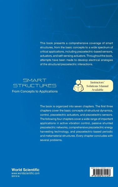 This book presents a comprehensive coverage of smart structures, from the basic concepts to a wide spectrum of critical applications, including piezoelectric-based sensors, actuators, and self-sensing actuators. Throughout the book, attempts have been made to develop electrical analogies of the structural/piezoelectric interactions. The book is organized into seven chapters. The first three chapters cover the basic concepts of structural dynamics, control, piezoelectric actuators, and piezoelectric sensors. The following four chapters cover a wide range of important applications in active vibration control, passive shunted piezoelectric networks, comprehensive piezoelectric energy harvesting technology, and piezoelectric-based periodic and metamaterial structures. Every chapter concludes with several problems.