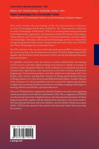 This book includes the proceedings of the 21st International Conference on Smart Technologies & Education (STE2024). The "International Conference on Smart Technologies & Education" (STE) is an annual global meeting dedicated to the fundamentals, applications, and experiences in the field of Smart Technologies, Online, Remote, and Virtual Engineering, Virtual Instrumentation, and other related new technologies. Nowadays, online and smart technologies are the core of most fields of engineering and the whole society. Consequently, the motto of this year's STE2024 was "Smart Technologies for a Sustainable Future".