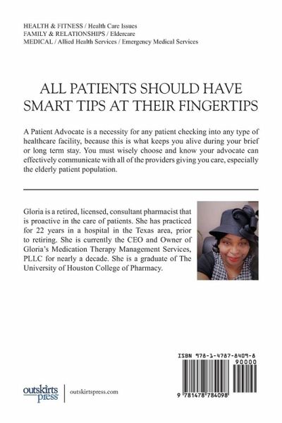 The health care arena has changed from the old days of just checking a patient into a facility for a illness or accident and leaving them to be cared for by the providers. Health care is what you choose to invest into it. Any person admitted into any type of health care facility needs a PATIENT ADVOCATE to represent and protect them, especially our elderly patient population. The most important keys are communication with the staff at the facility and the knowledge of the advocate you choose to represent you. This book expresses vital tips recommended to be considered to prevent potential harm to any patient, especially the elderly. This book gives important information you should be armed with and reasons you should select a consultant pharmacist to represent you or your loved one. It also describes actual scenarios that have happened to actual patients and how to handle problems before you are discharged or transferred from any type of health care facility.