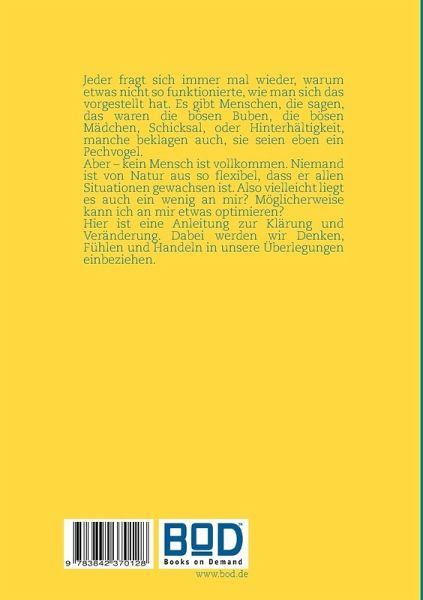 Sie werden lernen an sich 'rumzubasteln'. Das geschieht sowohl in der Realität, jedoch auch durch Methoden, die die Möglichkeiten erheblich erweitern. So erlernen Sie das Rollenspiel in angepasster Form für sich zu nutzen, erwerben, soeit Sie es noch nicht beherrschen, das Autogene Training, erfahren etwas über Vorsaatzformeln und deren Nutzen. Die Kurzform des AT als schnelle Hilfe ind stressigen Situationen werden Sie anwenden können. Eine weiterer Methode, die Sie unterstützen wird sind die kontrollierten Tagträumereien. Einen breiten Raum nehmen die Methoden zur Klärung (Diagnostik) ein. Diesen Bereich nannte ich Spiegelfechtereien. Dazu gehören der Blick in den Spiegel, sowie die anderen als Spiegel zu nutzen. Sie erfahren etwas über die verschiedensten Akzentuierungen der Persönlichkeit an konkreten Beispielen. Abschließend können Sie einen psychologischen Test durchführen - am besten wirklich erst, nachdem Sie eigenständig einiges über sich erfahren haben, um so weitere Erkenntnisse über die eigene Person zu gewinnen.