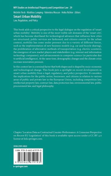 This book adds a critical perspective to the legal dialogue on the regulation of 'smart urban mobility'. Mobility is one of the most visible sub-domains of the 'smart city', which has become shorthand for technological advances that influence how cities are structured, public services are fashioned, and citizens coexist. In the urban context, mobility has come under pressure due to a variety of different forces, such as the implementation of new business models (e.g. car and bicycle sharing), the proliferation of alternative methods of transportation (e.g. electric scooters), the emergence of new market players and stakeholders (e.g. internet and information technology companies), and advancements in computer science (in particular due to artificial intelligence). At the same time, demographic changes and the climate crisis increase innovation pressure. In this context law is a seminal factor that both shapes and is shaped by socio-economic andtechnological change. This book puts a spotlight on recent developments in smart urban mobility from a legal, regulatory, and policy perspective. It considers the implications for the public sector, businesses, and citizens in relation to various areas of public and private law in the European Union, including competition law, intellectual property law, contract law, data protection law, environmental law, public procurement law, and legal philosophy. Chapter 'Location Data as Contractual Counter-Performance: A Consumer Perspective on Recent EU Legislation' of this book is available open access under a CC BY 4.0 license at link.springer.com.