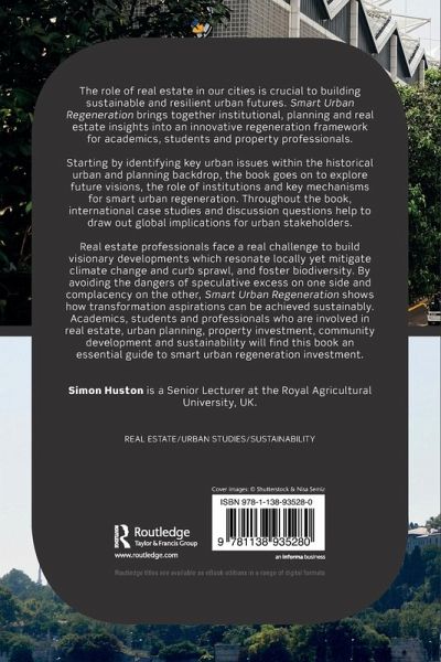 The role of real estate in our cities is crucial to building sustainable and resilient urban futures. Smart Urban Regeneration brings together institutional, planning and real estate insights into an innovative regeneration framework for academics, students and property professionals. Starting by identifying key urban issues within the historical urban and planning backdrop, the book goes on to explore future visions, the role of institutions and key mechanisms for smart urban regeneration. Throughout the book, international case studies and discussion questions help to draw out global implications for urban stakeholders. Real estate professionals face a real challenge to build visionary developments which resonate locally yet mitigate climate change and curb sprawl, and foster biodiversity. By avoiding the dangers of speculative excess on one side and complacency on the other, Smart Urban Regeneration shows how transformation aspirations can be achieved sustainably. Academics, students and professionals who are involved in real estate, urban planning, property investment, community development and sustainability will find this book an essential guide to smart urban regeneration investment.