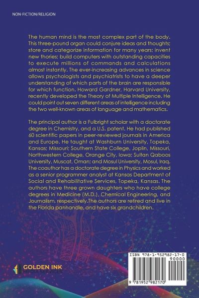 The principal author is a Fulbright scholar with a doctorate degree in chemistry and a U. S. patent. He published 60 papers in peer-reviewed scientific journals in America and Europe. He taught at Washburn University, Topeka, Kansas; Missouri Southern State College, Joplin, Missouri; Northwestern College, Orange City, Iowa; Sultan Qaboos University, Muscat, Oman; and Mosul University, Mosul, Iraq. The coauthor has a doctorate degree in physics and worked as a senior programmer analyst with Kansas Department of Social and Rehabilitative Services, Topeka, Kansas. The authors have three grown daughters who have college degrees in medicine (M. D.), chemical engineering, and journalism. The authors are now retired and live in the Florida panhandle. They have six grandchildren.